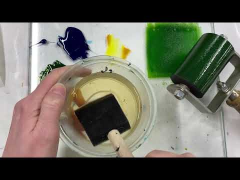 - Η διαδικασία είναι πολύ απλή: σχεδιάστε απευθείας πάνω στην πλάκα με μαρκαδόρους ή στυλό. Η χρήση γαντιών νιτριλίου βοηθά να παραμείνει καθαρή η επιφάνεια από δαχτυλιές. Στη συνέχεια, βρέξτε την πλάκα με ένα σφουγγάρι και νερό. Περάστε τη με μελάνι χρησιμοποιώντας έναν ρολό χαρακτικής. Το μελάνι κολλά μόνο στα σημεία που έχουν σχέδιο, ενώ οι υγρές, καθαρές περιοχές το απωθούν. Η εκτύπωση γίνεται είτε με πρέσα είτε πιέζοντας την πίσω πλευρά της πλάκας με ένα κουτάλι. Αν η εκτύπωση βγει αχνή, απλώς ξαναβρέξτε και ξαναμελανώστε την πλάκα.